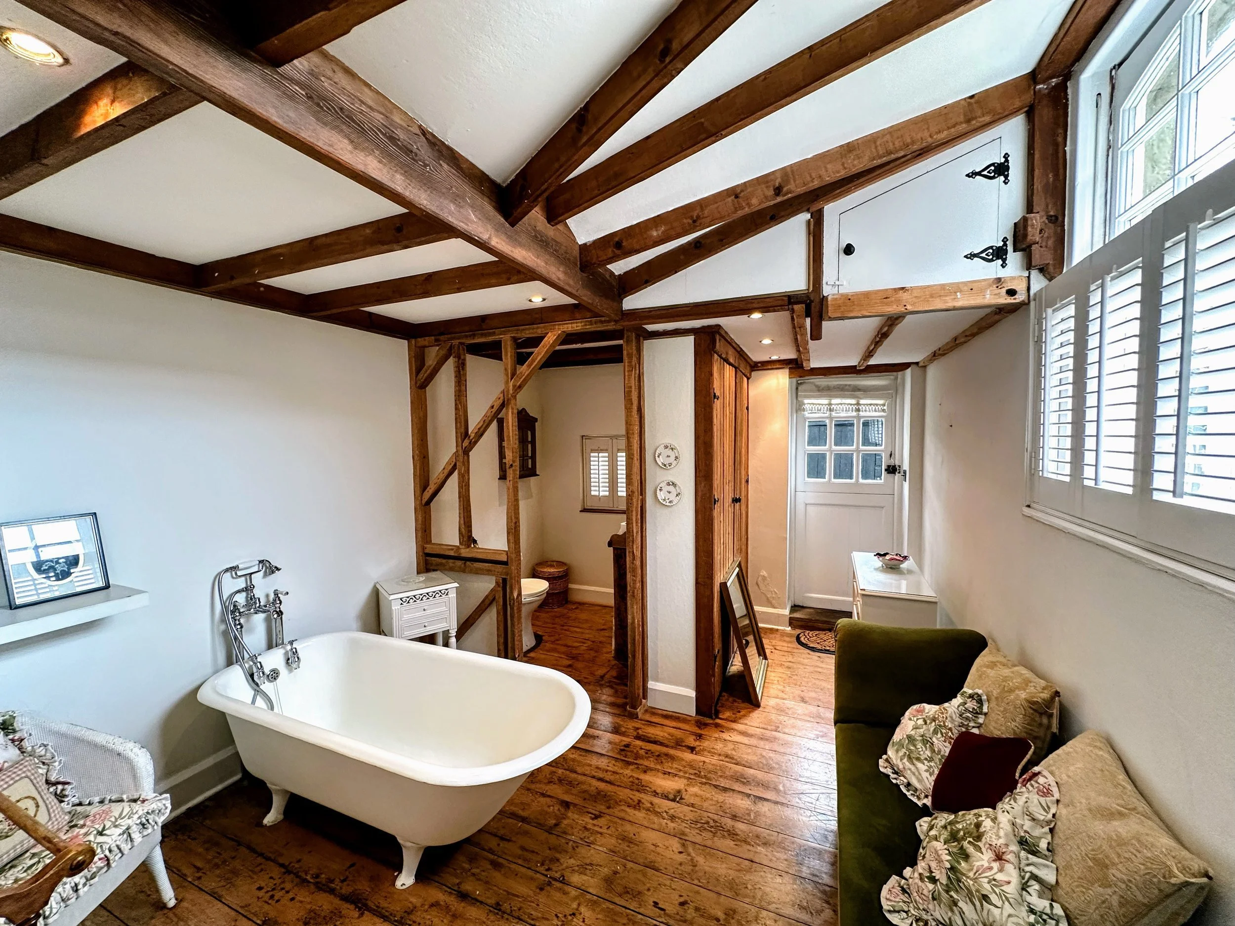 This inviting one-bedroom cottage, seamlessly blends comfort with charm! Enter the spacious living room, inviting you to unwind and relax in its ample space. Treat yourself to the luxury of a free-standing Victorian bath, bringing an elegant touch to your stay. And, in the property's traditional galley kitchen, crafted from reclaim wood, prepare yourself a cup of tea… and choose a seat in the secluded courtyard to relax to the distant sounds of the waves and gulls.